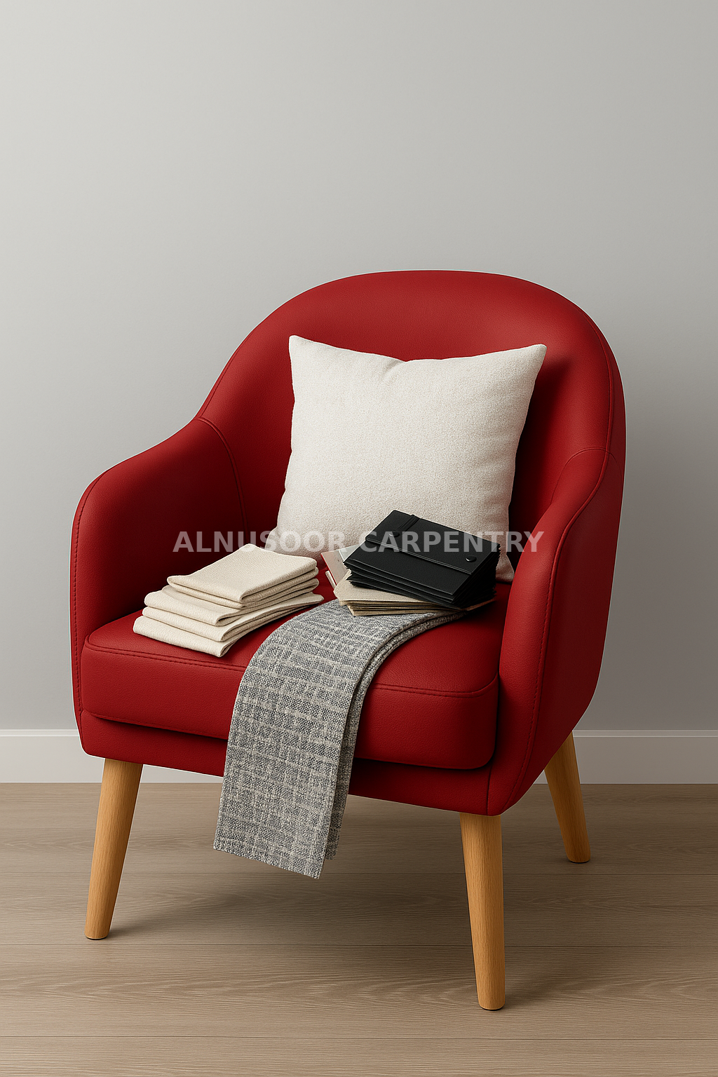 This stylish café chair features high-quality upholstery, comfortable armrests, and a modern design suitable for outdoor cafes and restaurants. The legs are made of durable wood in a stylish color.